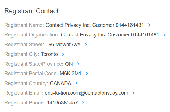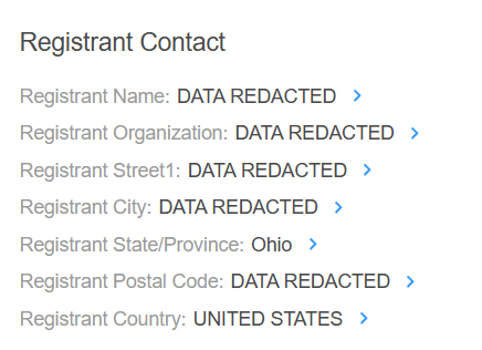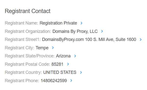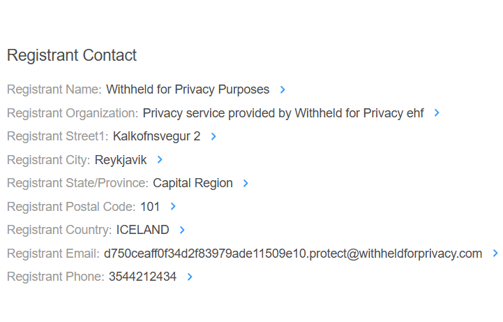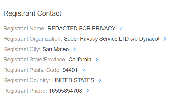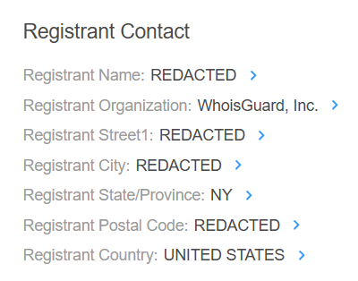 If you see phrases like "Redacted for Privacy," "Withheld for Privacy," or "Proxy Service," it means that the domain is using a privacy service.